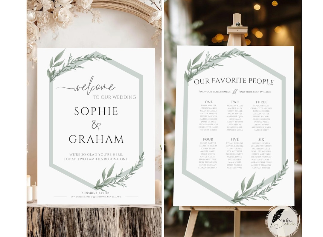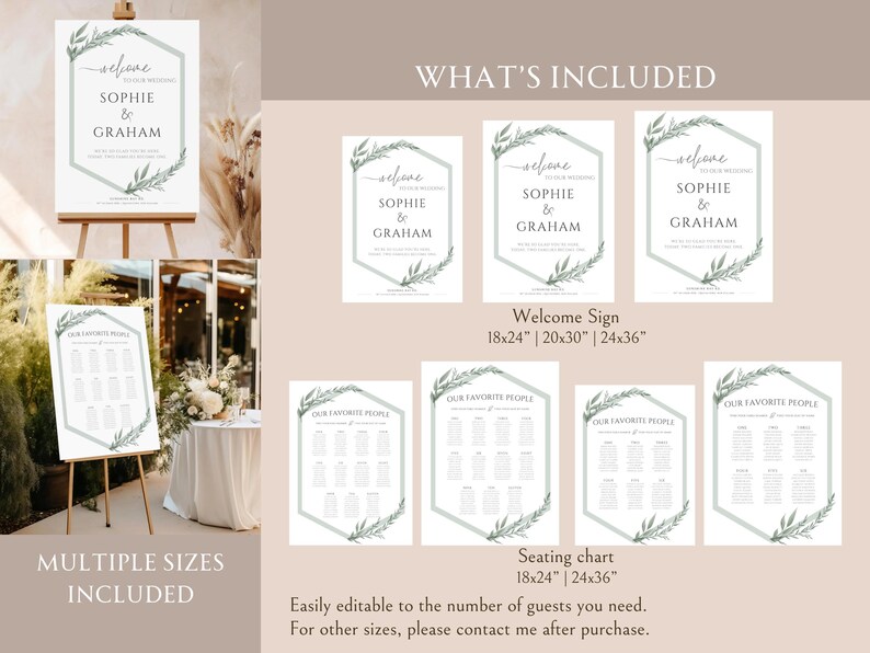 Sage Green Wedding Welcome Sign Seating Chart Bundle Modern
