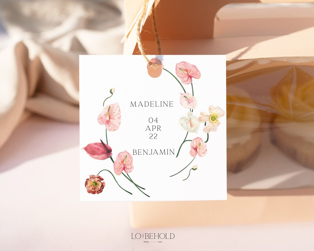 Floral Wedding Sticker Template Pink Spring Floral Wedding Label