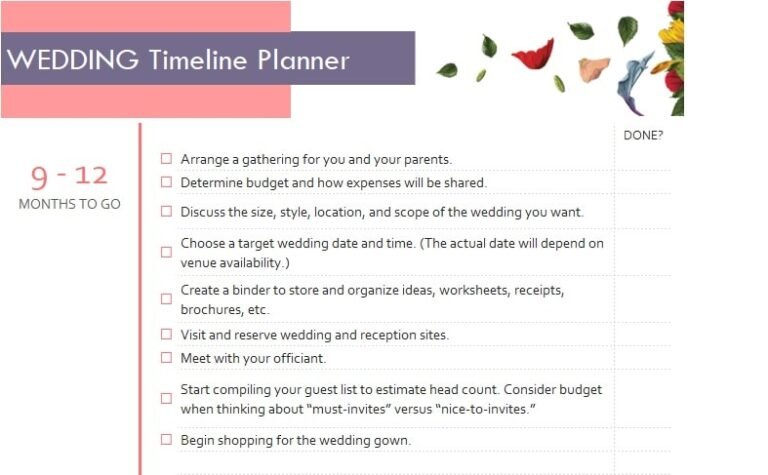 Wedding Timeline Template Excel