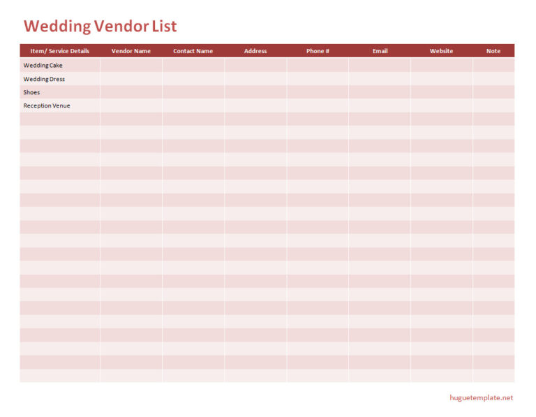 Wedding Vendor List Template Excel