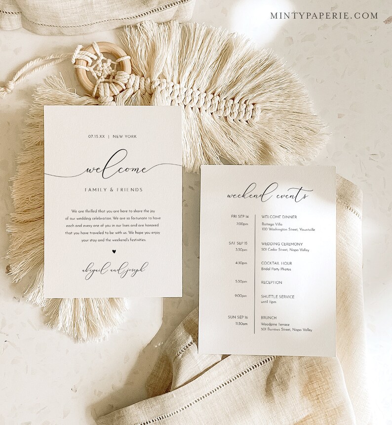 Minimalist Wedding Welcome Bag Letter Template Wedding Hotel Bag Note