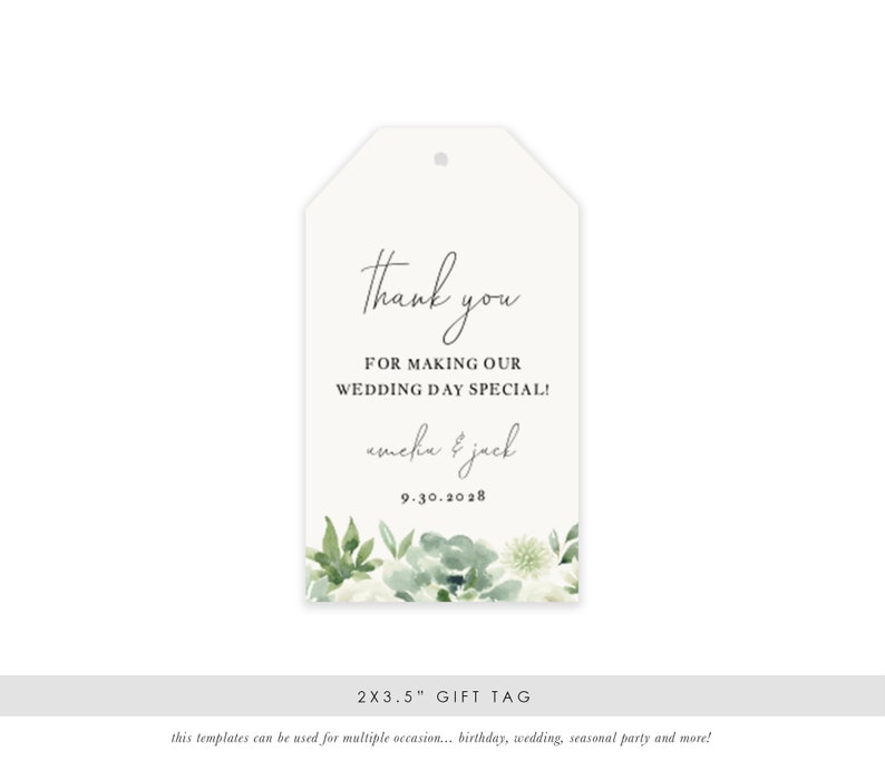 Succulents Thank You Tag Template Wedding Welcome Bag Tag Etsy