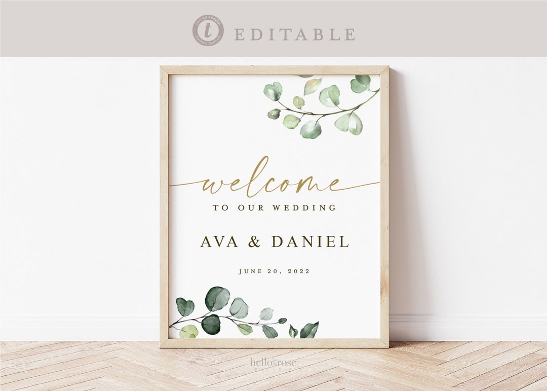 Wedding Welcome Template Sign Greenery and Gold Welcome Wedding