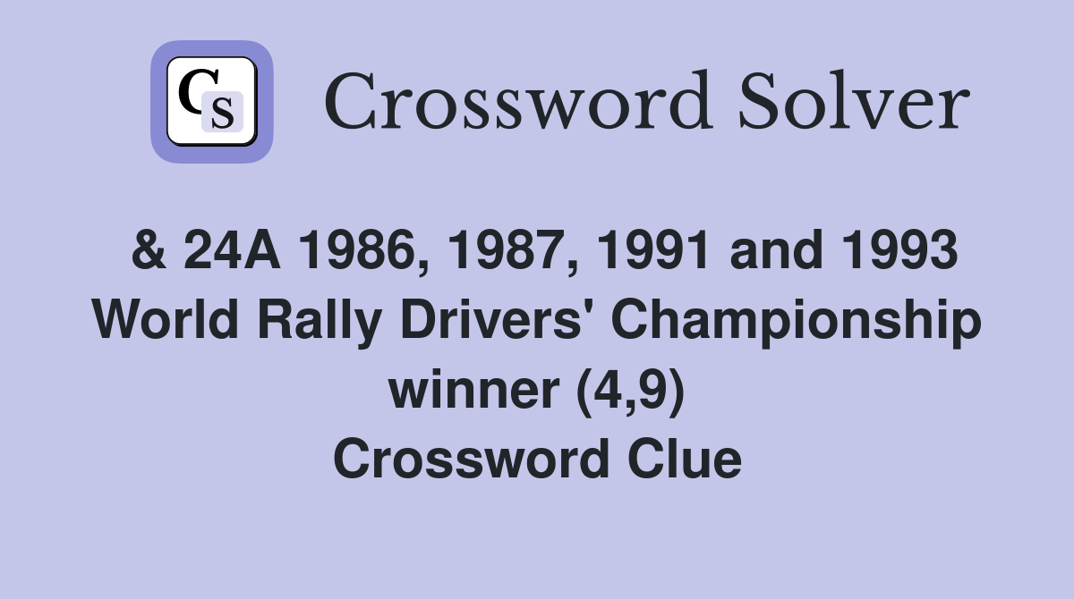 24A 1986 1987 1991 and 1993 World Rally Drivers #39 Championship