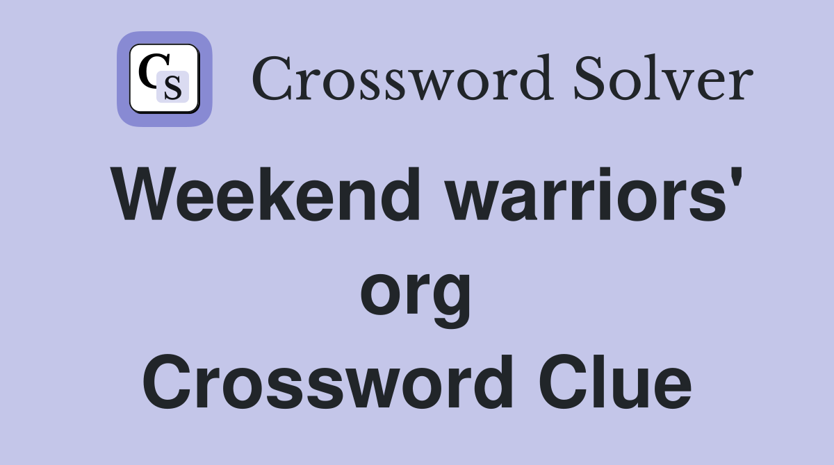 Weekend warriors org Crossword Clue Answers Crossword Solver