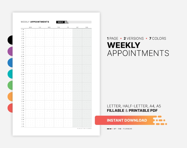 Weekly Appointment Planner / Schedule Printable PDF by tidymighty