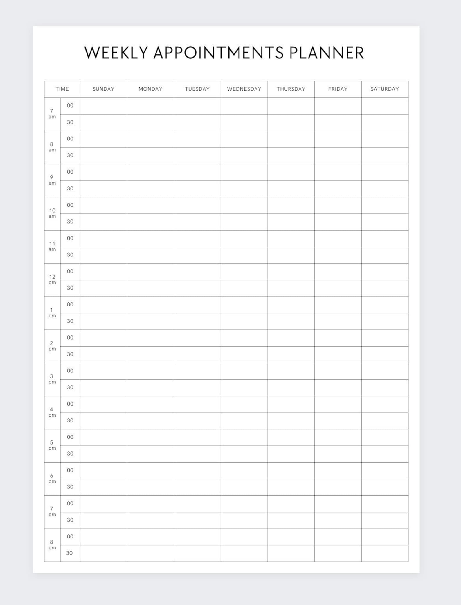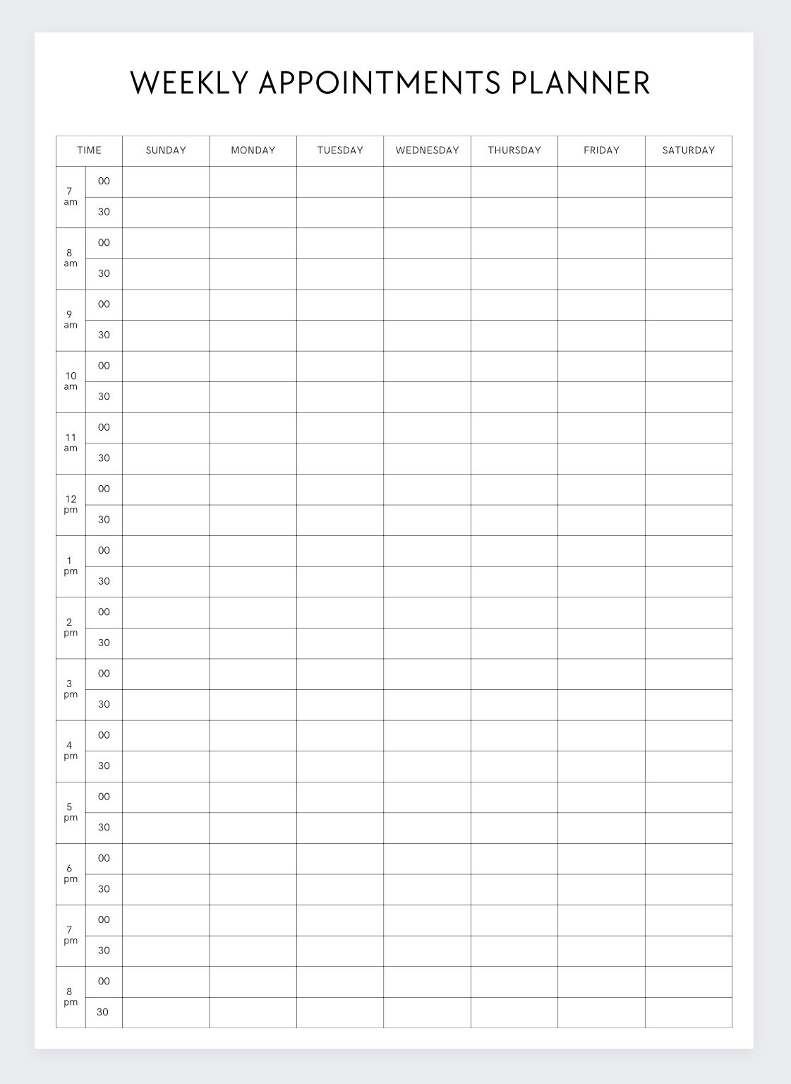 Weekly Appointment Planner appointment Week appointment Log weekly