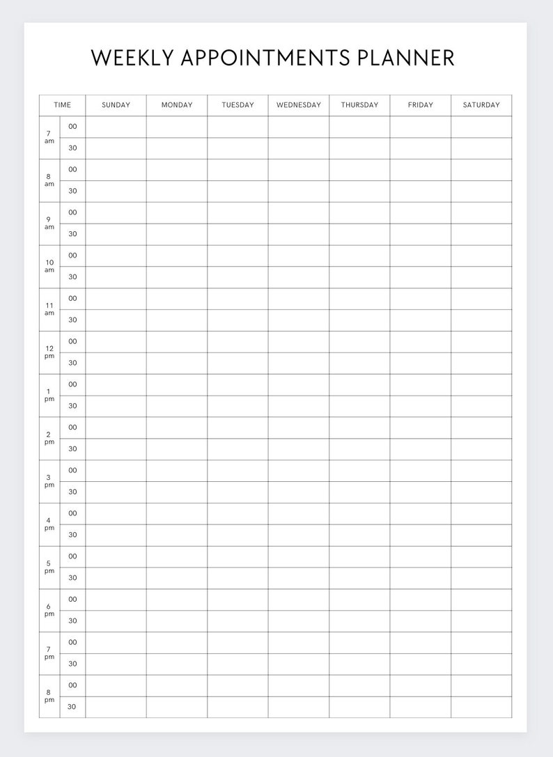 Free Printable Weekly Appointments Planner Template Sheet PDF