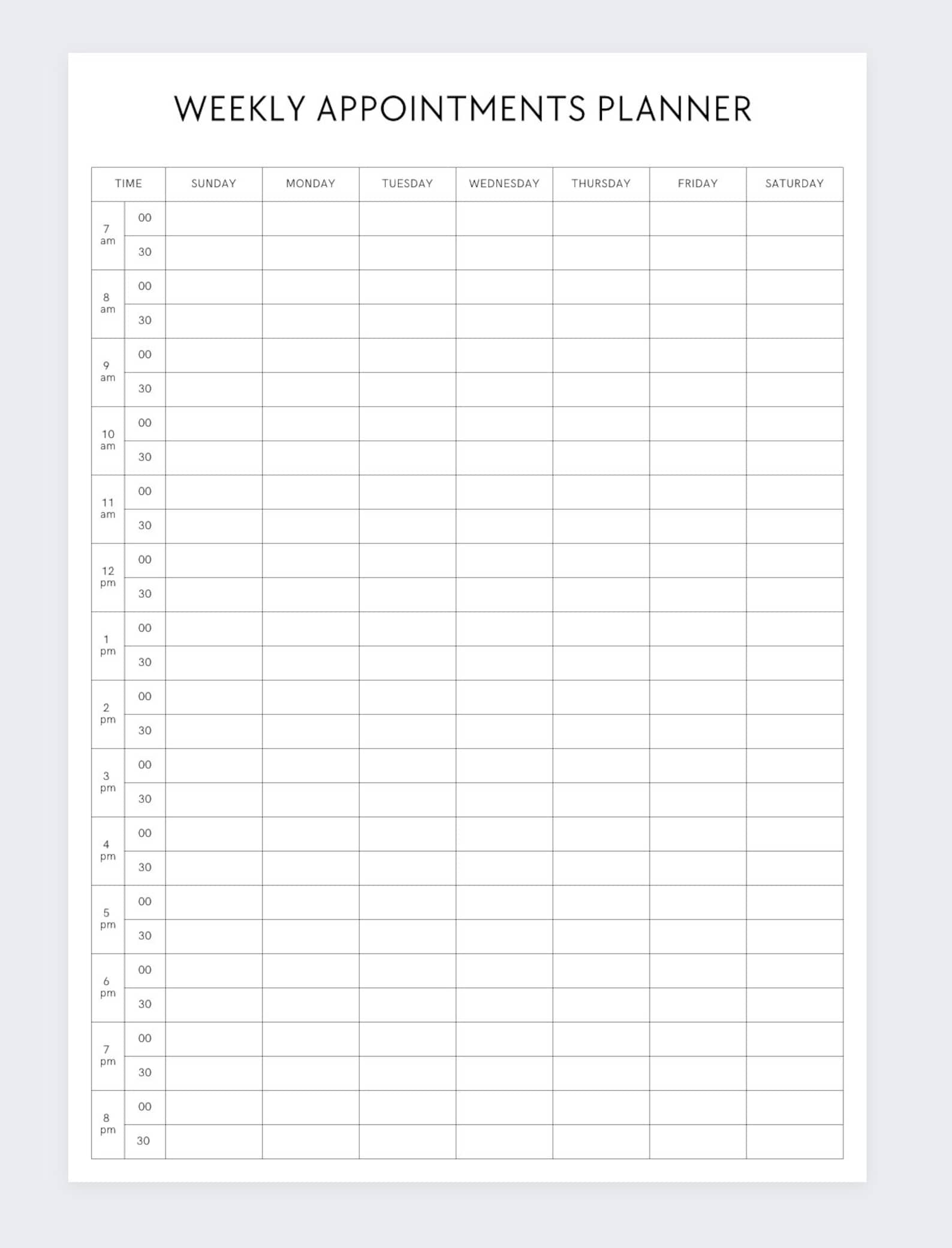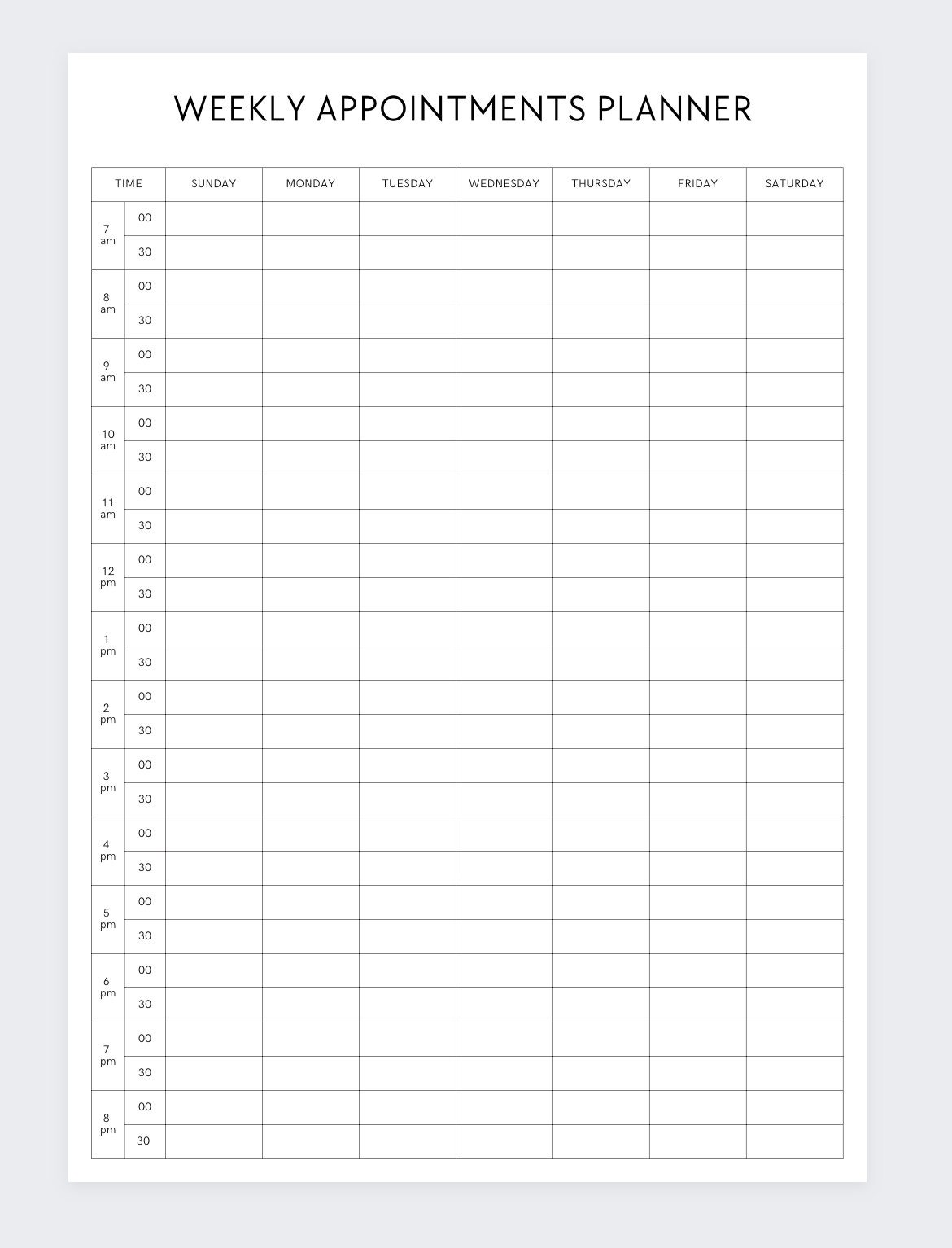 Weekly Appointment Planner Printable Work Small Business Agenda