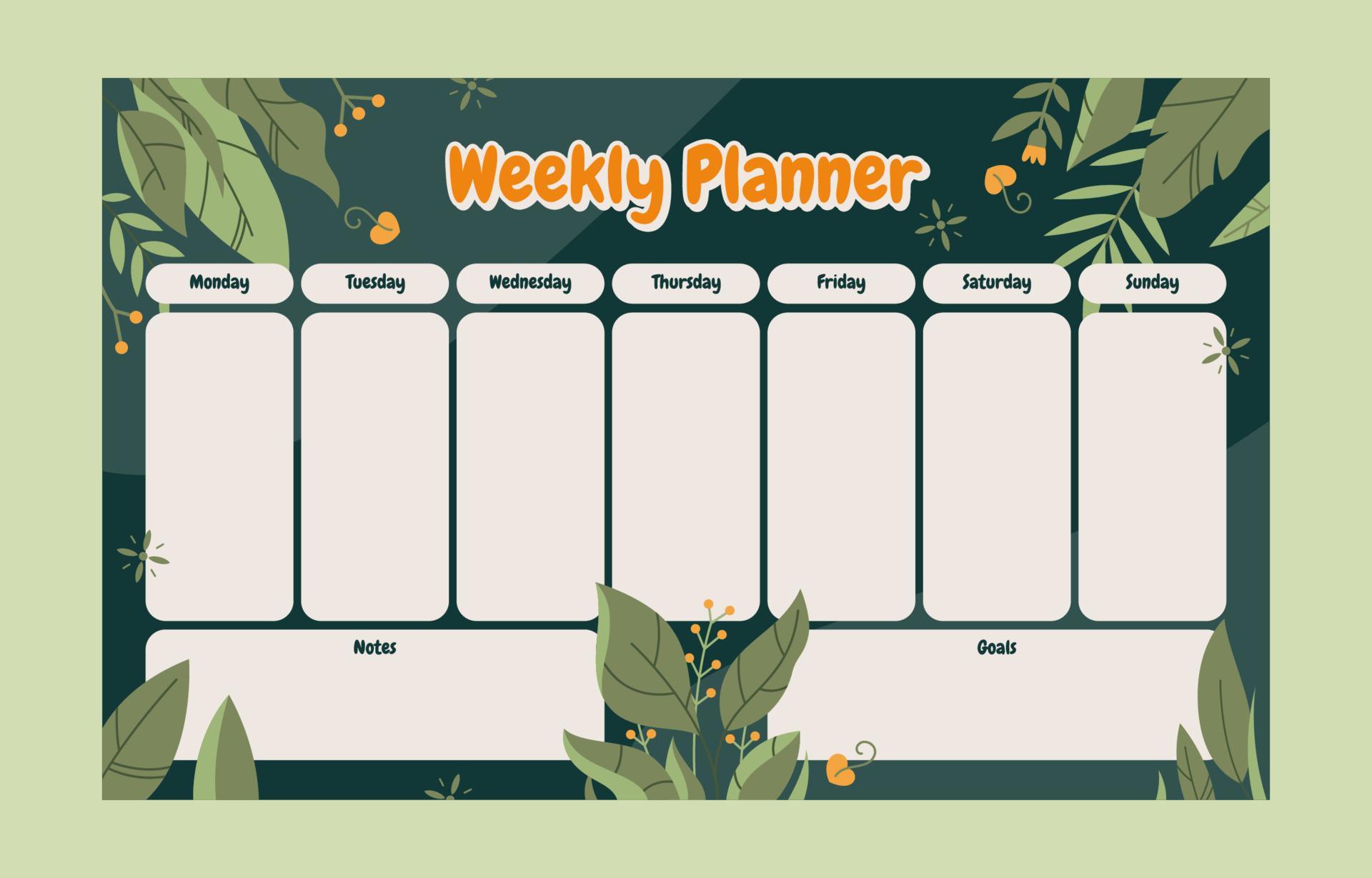Weekly Planner Calendar Template 15711154 Vector Art at Vecteezy