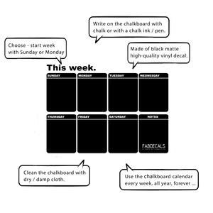 Extra Large Weekly Chalkboard Calendar Wall Decal This Week Etsy