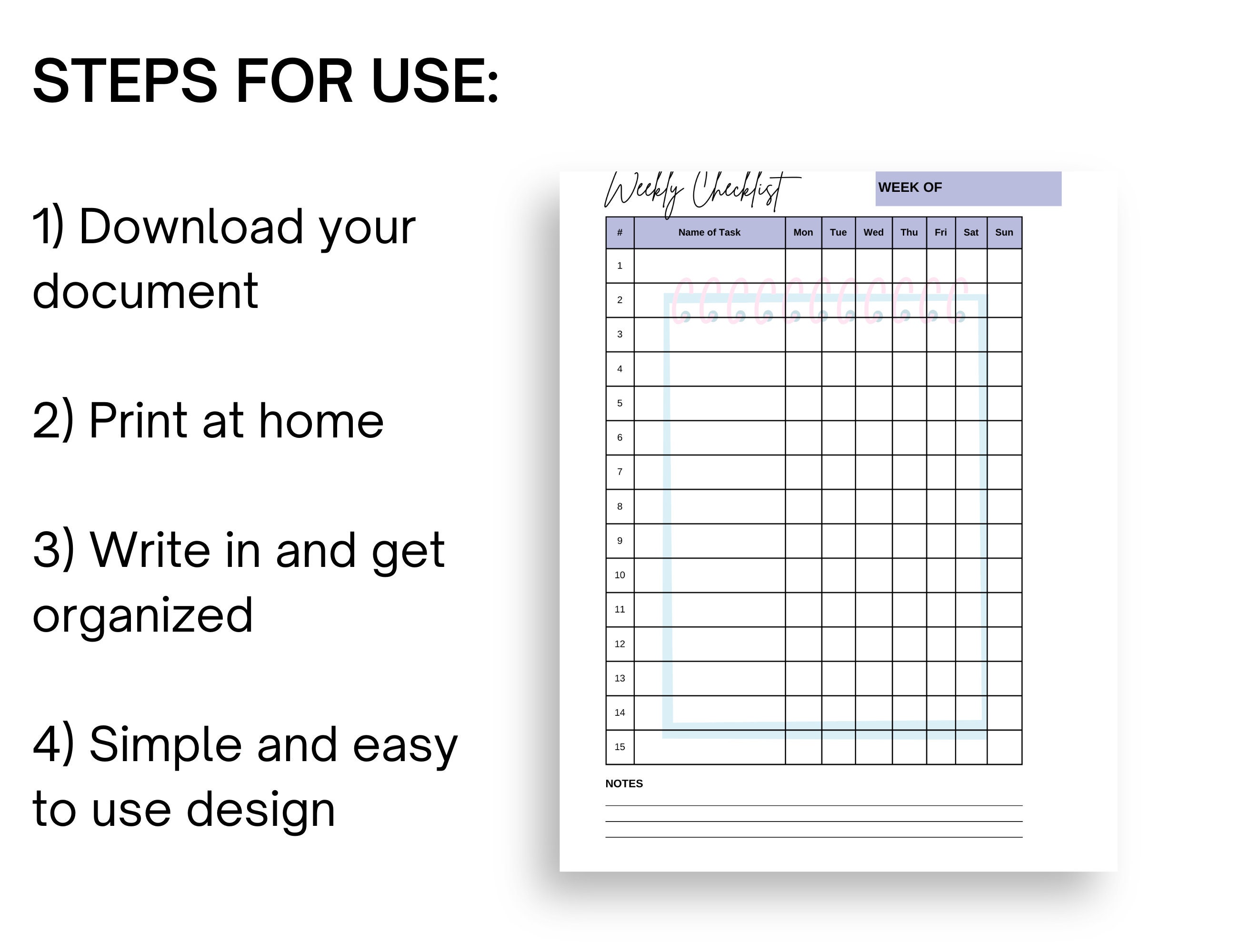 Weekly Checklist Printable PDF Template A4/a5/letter (3 Colors