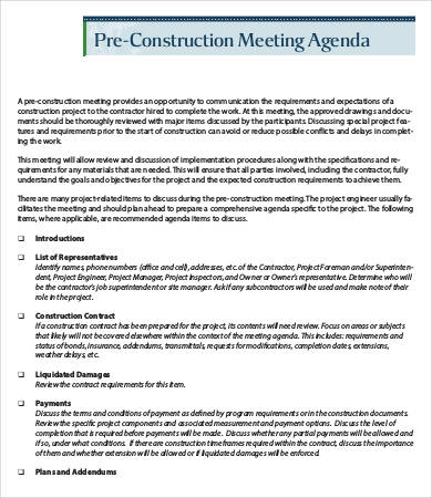11 Pre Construction Meeting Templates PDF Word