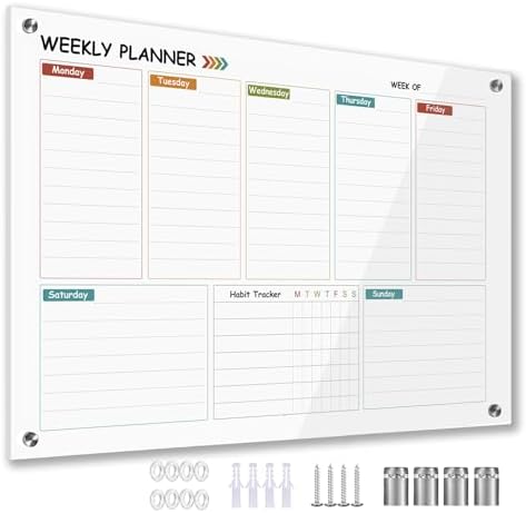 Clear Acrylic Weekly Dry Erase Calendar To Do List Whiteboard 7 Day