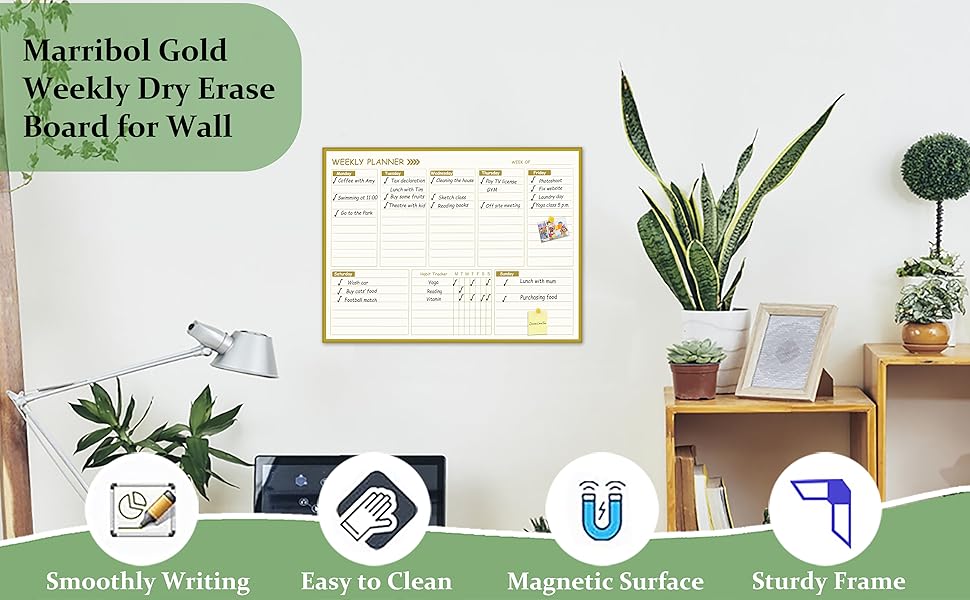 Amazon com : Marribol Gold Weekly Dry Erase Board for Wall 12 quot x16