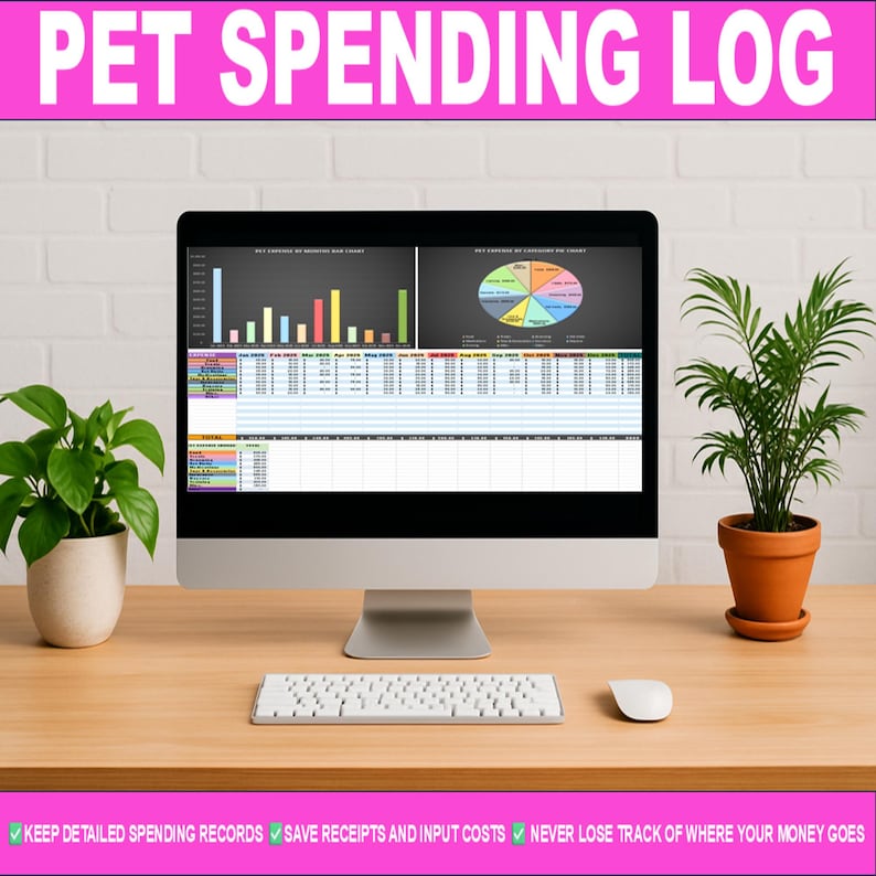 Pet Cost Tracker Spreadsheet: Monthly Expense Auto calculator (digital