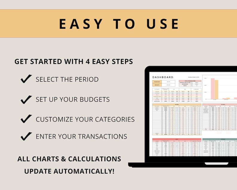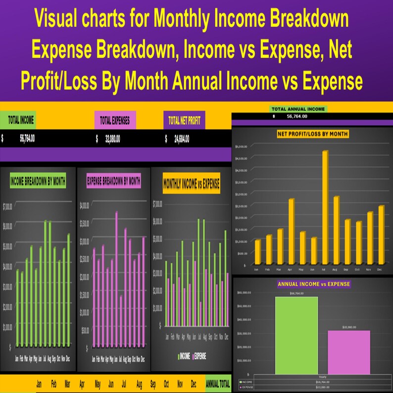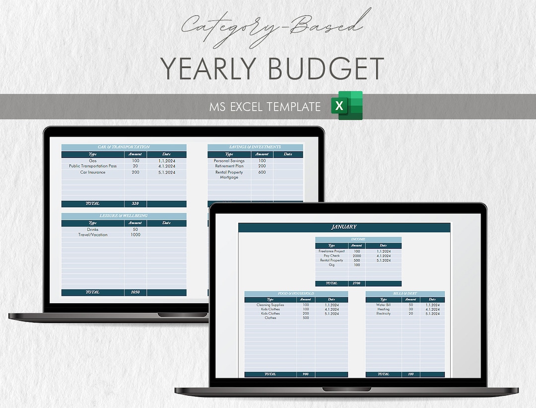 Yearly Budget Excel Template: Monthly Income Expense Tracker (digital