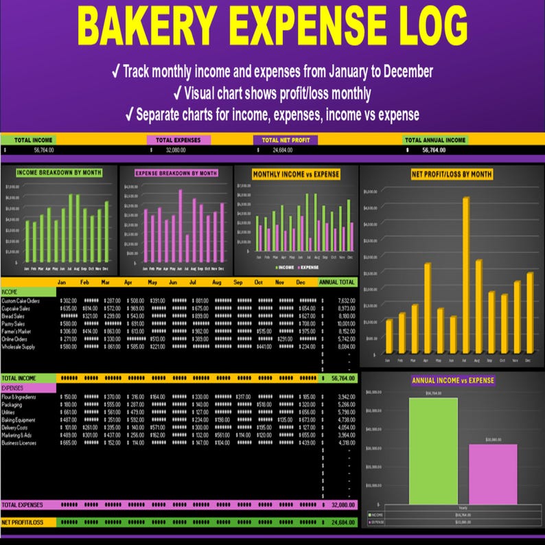 Bakery Expense Tracker: Monthly Income Spreadsheet (excel) Etsy