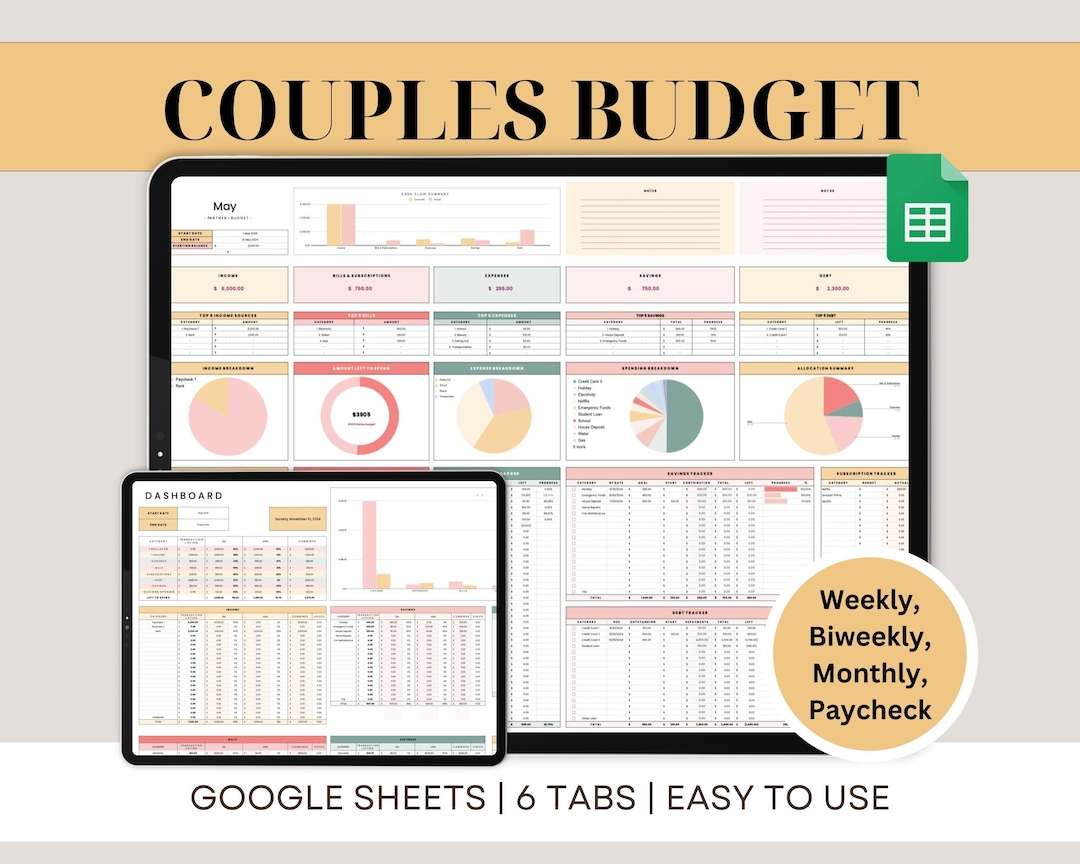 Budget Planner for Google Sheets Weekly Biweekly Monthly Budget