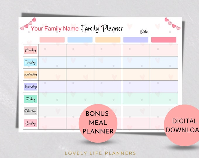 EDITABLE Daily Family Planner Family Schedule Planner Weekly