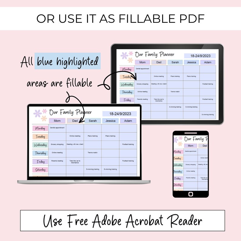 Weekly family planner editable family calendar printable