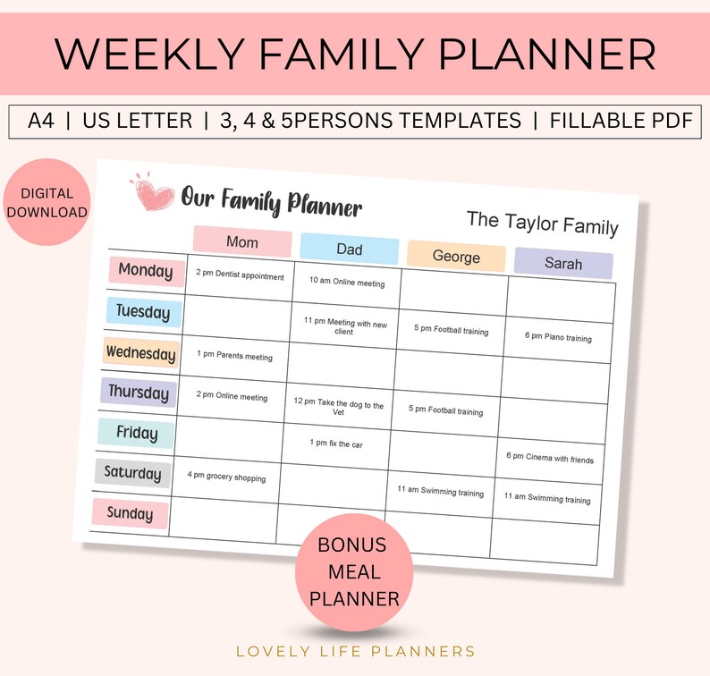 Weekly Family Planner Calendar Weekly family planner Family planner