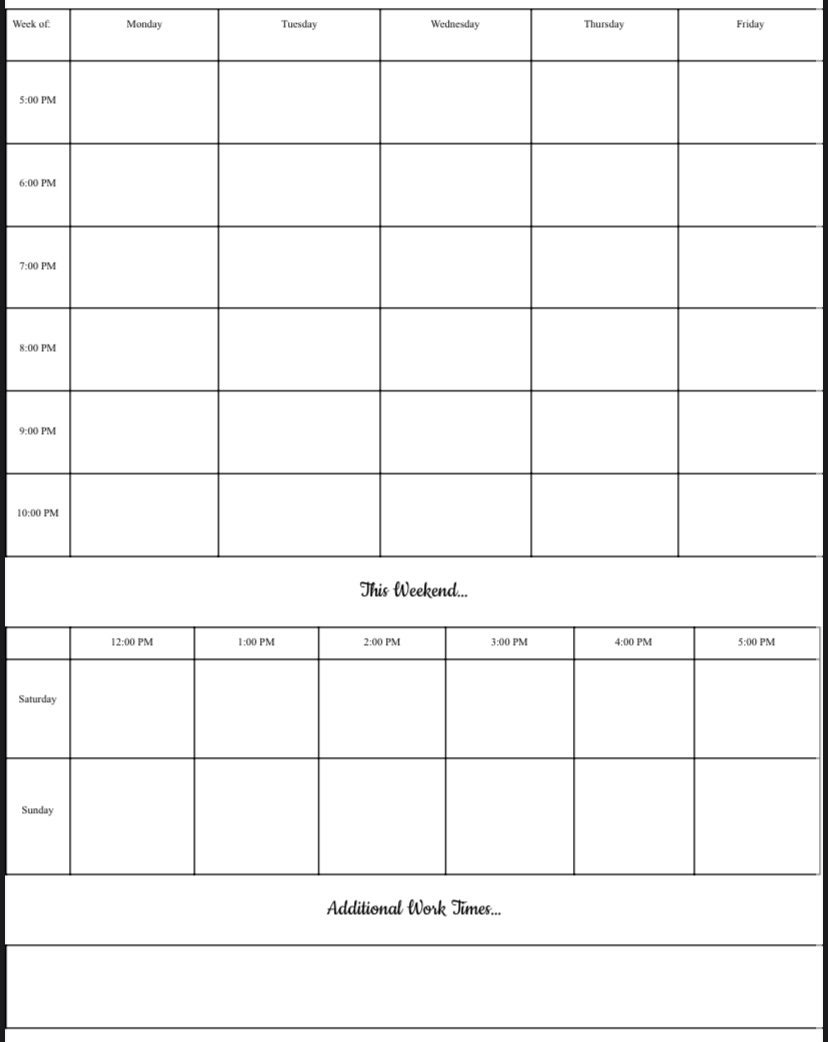 Blank Weekly Hourly Schedule