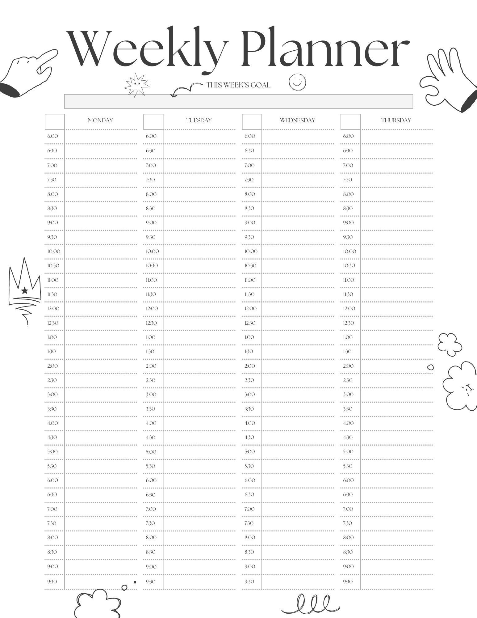 Weekly hourly planner templates Artofit