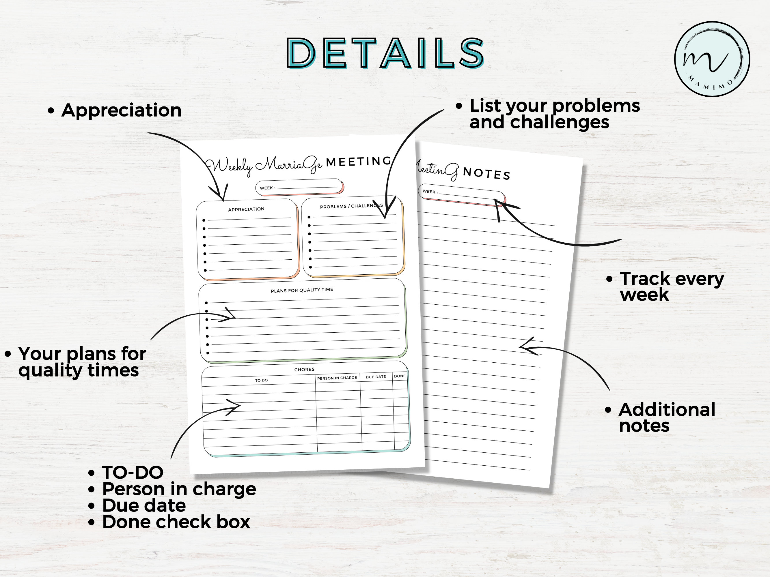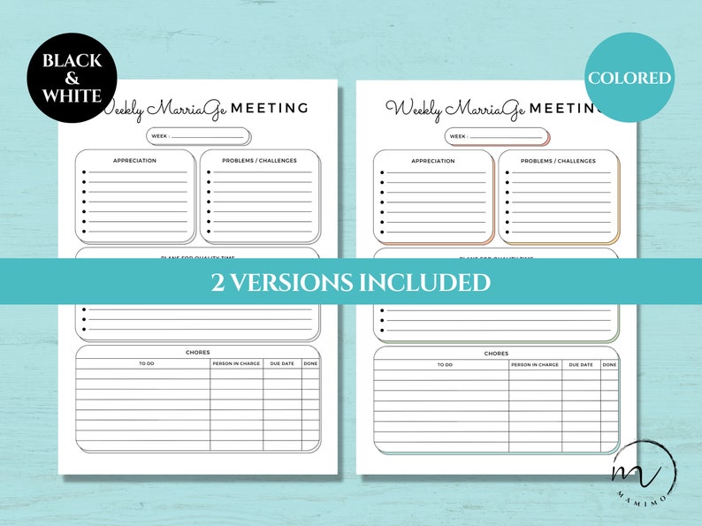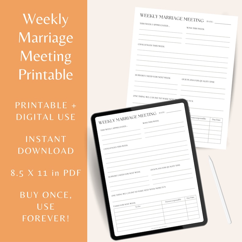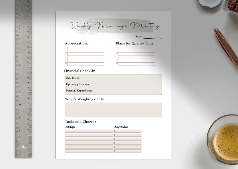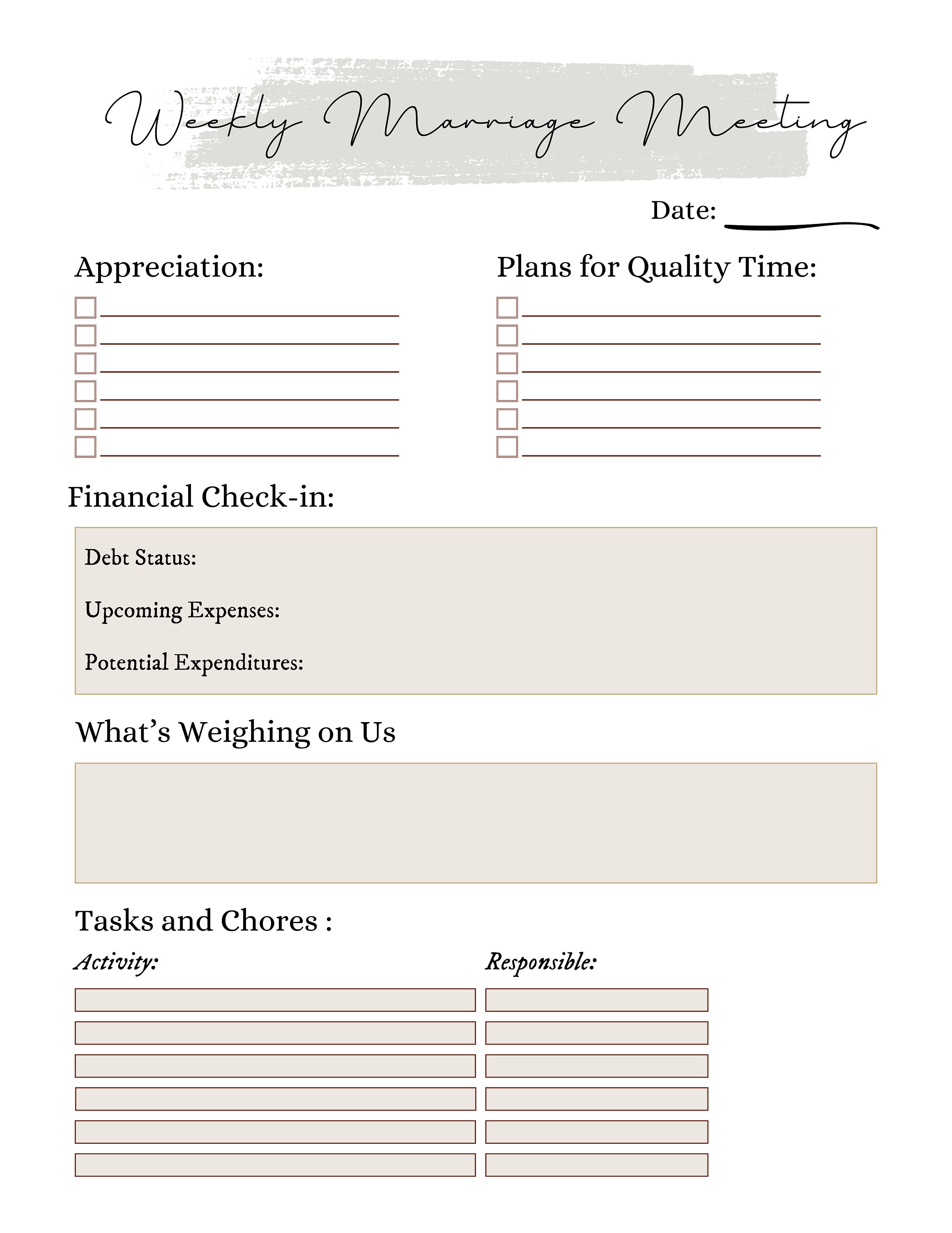 Weekly Marriage Meeting Template for Couples Downloadable Printable