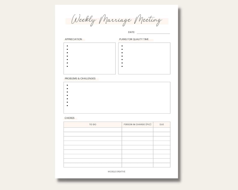 Weekly Marriage Meeting Template Marriage Communication Etsy