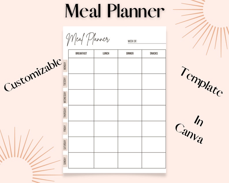 Editable Meal Planner Canva Template: Weekly Meal Prep Grocery List