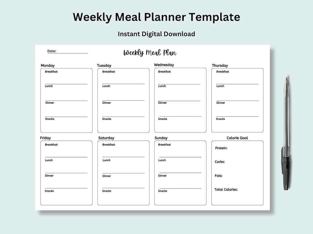 Printable Weekly Meal Planning Template Etsy