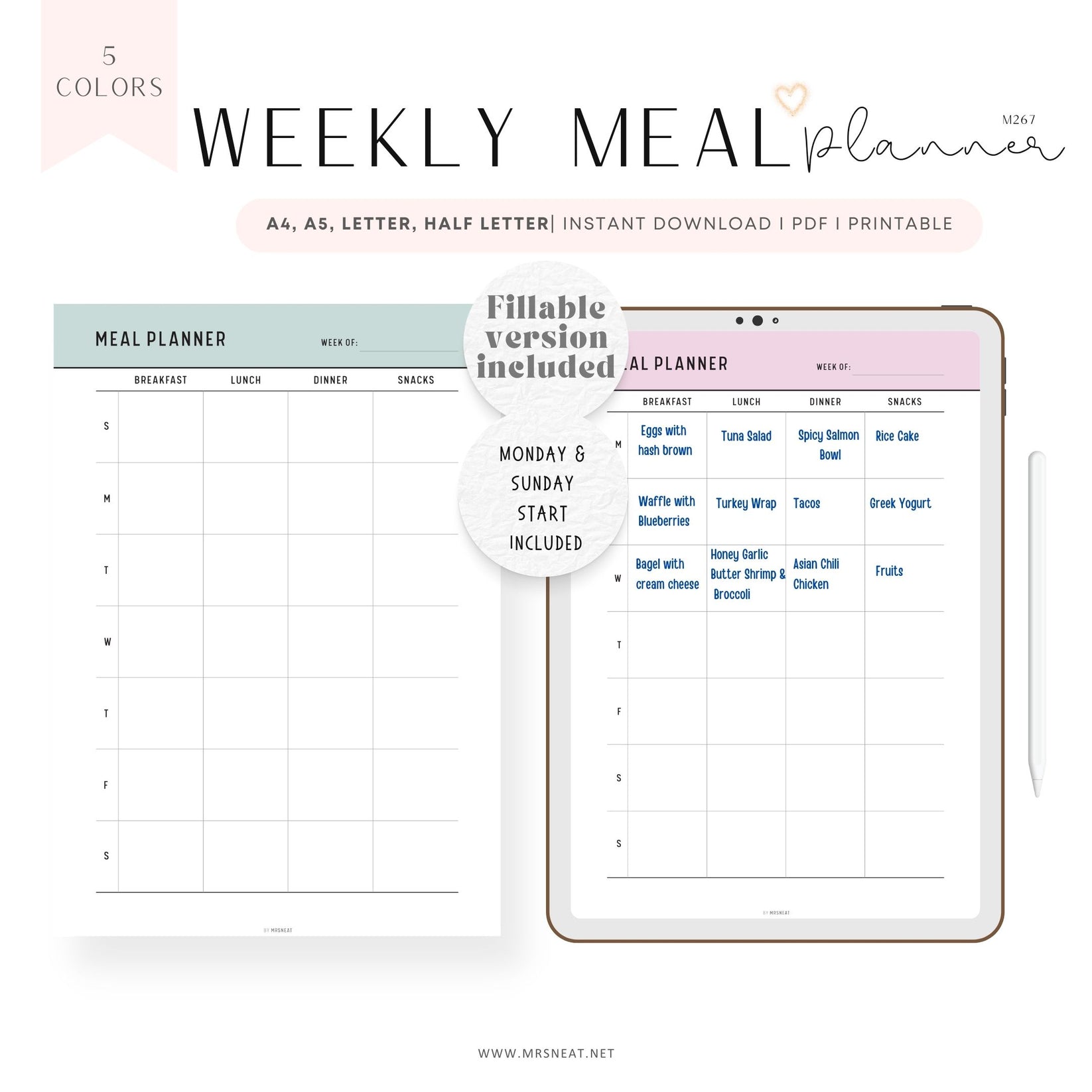 Weekly Meal Planner Template Printable M267 mrsneat