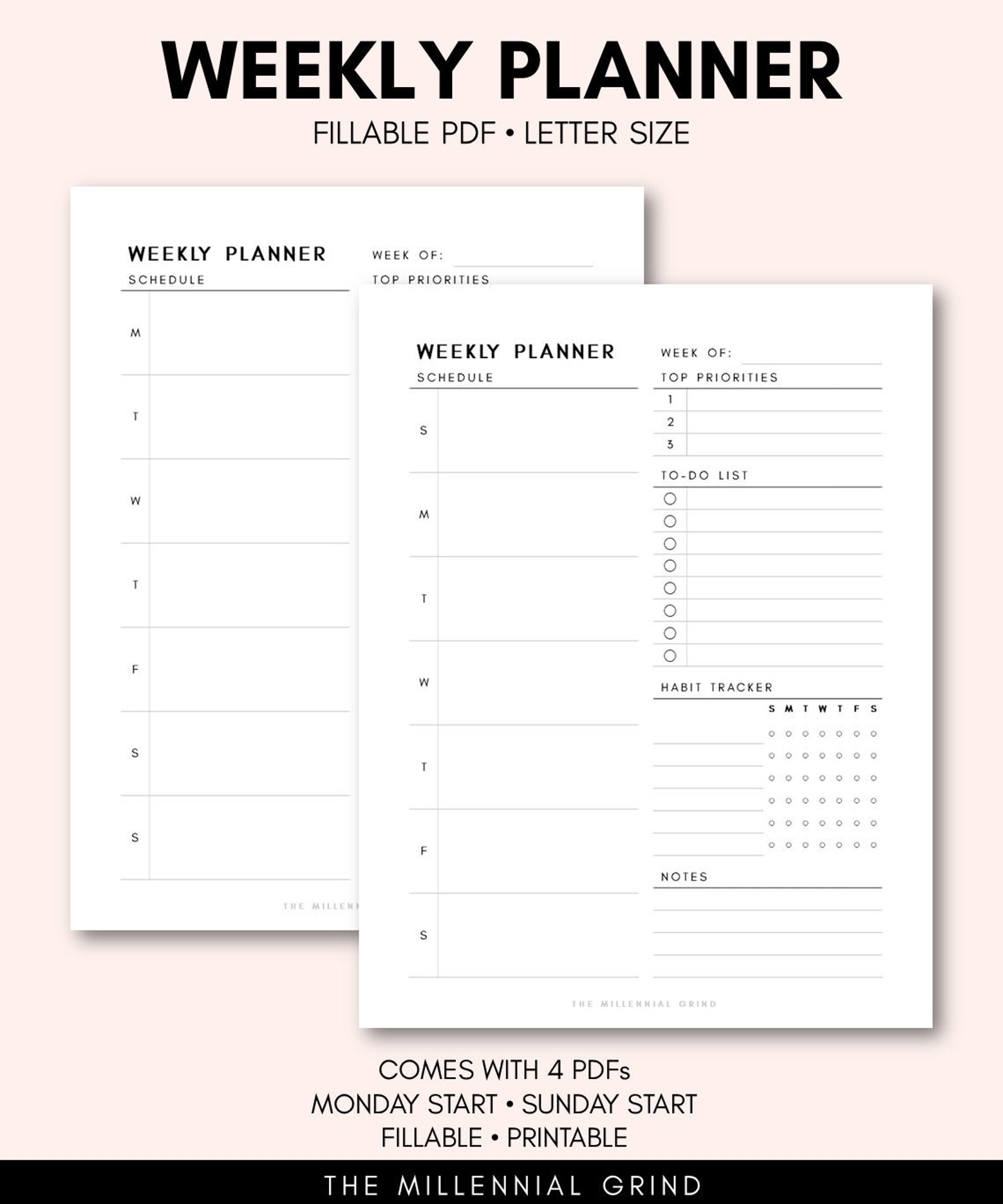 Free Printable Weekly Planner Pages • The Fit Cookie