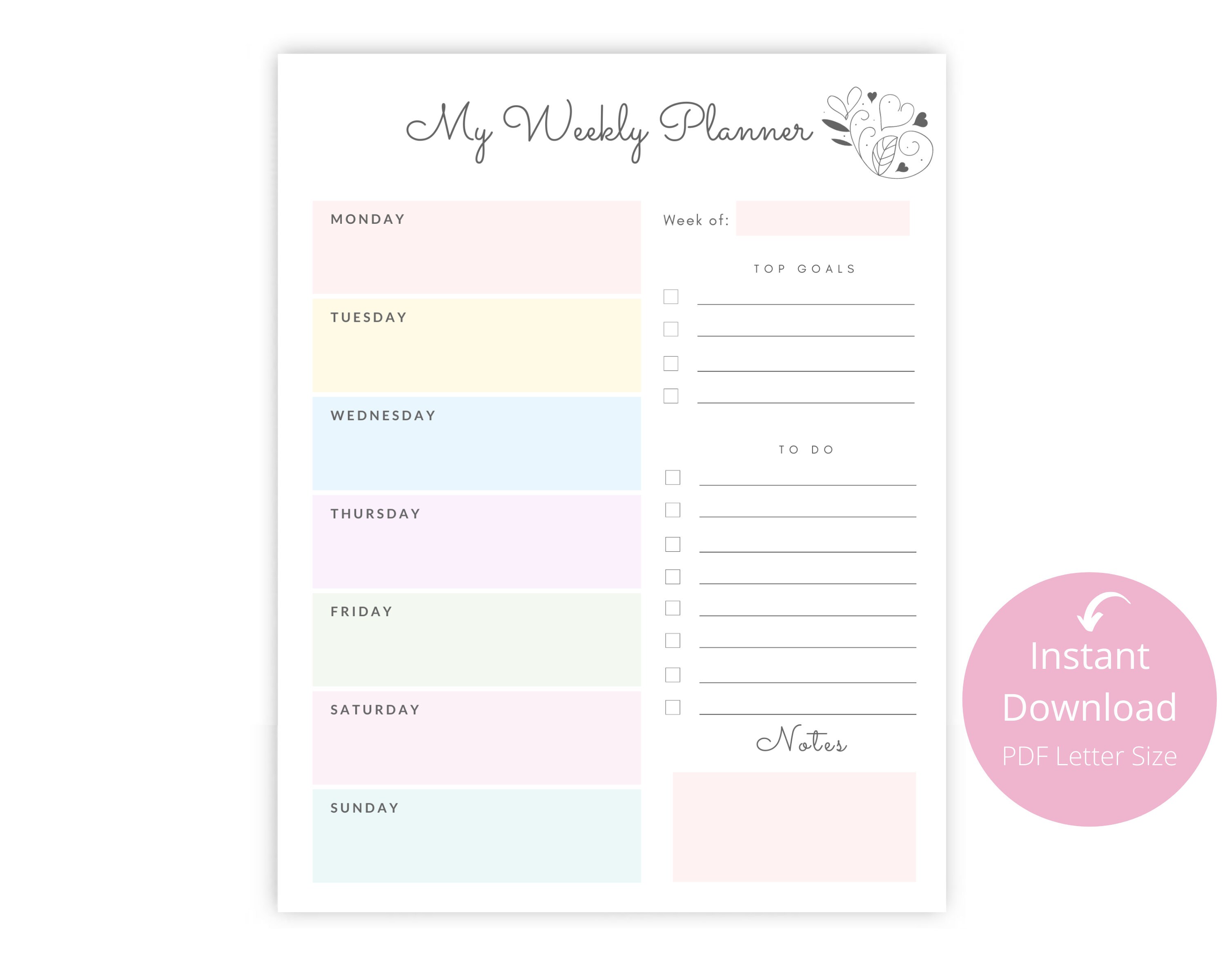 Weekly Planner Printable Planner Pages READY TO PRINT Goal Etsy