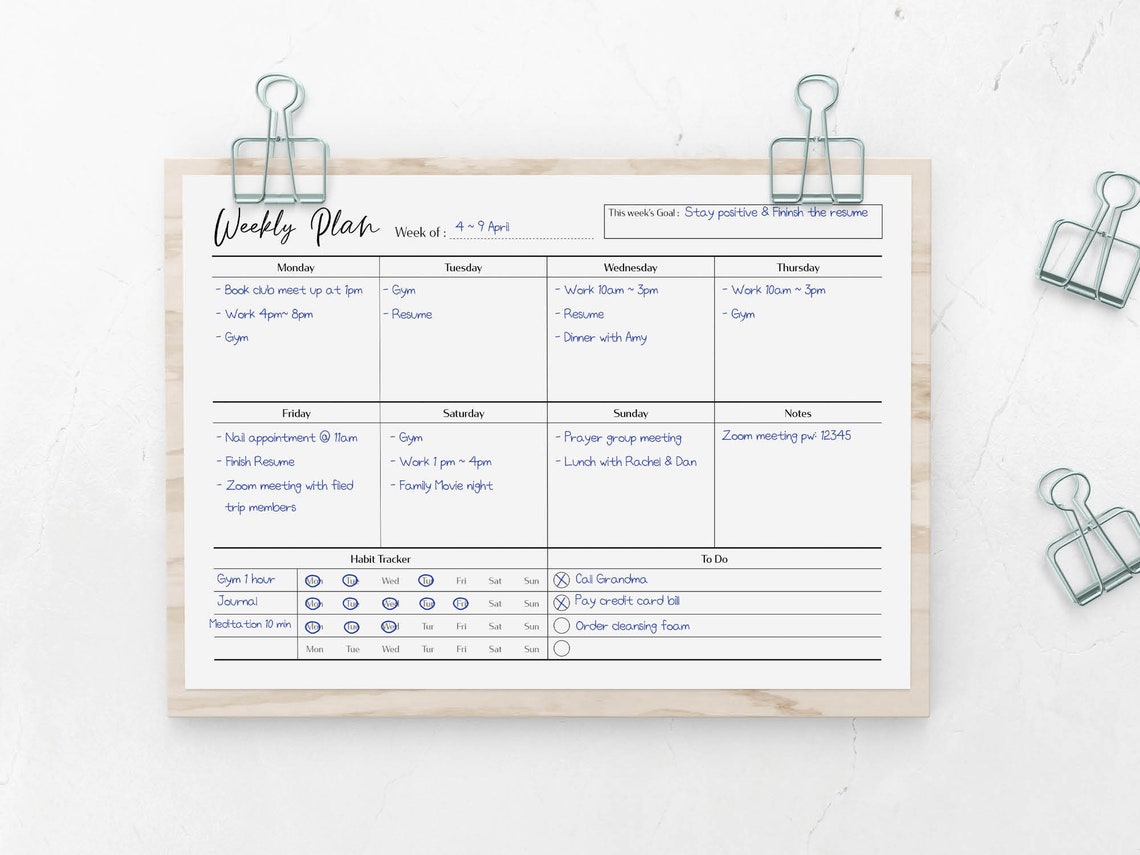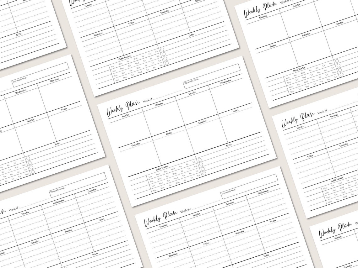 Weekly Schedule Printable Bundle Instant PDF Digital Download