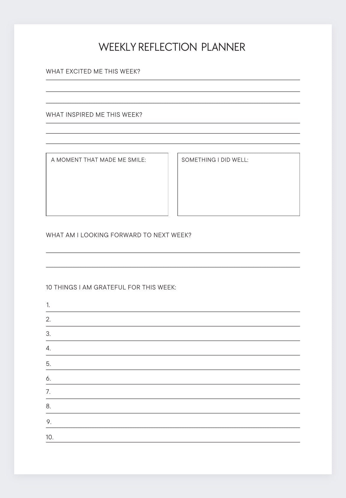 Weekly Reflection Planner weekly Review Weekly Reflection Weekly