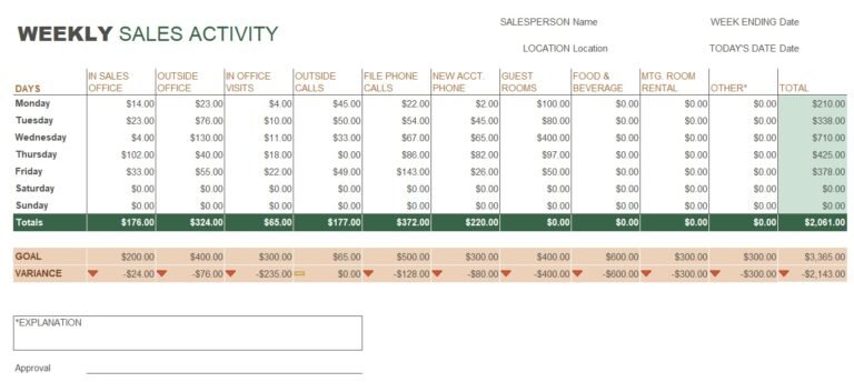 Weekly sales activity report template Artofit