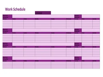 Weekly Work Schedule Template in Numbers MS Word Pages MS Excel