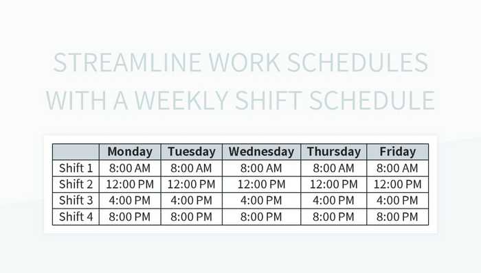 Optimize Workflow Efficiency With A Weekly Shift Schedule Excel