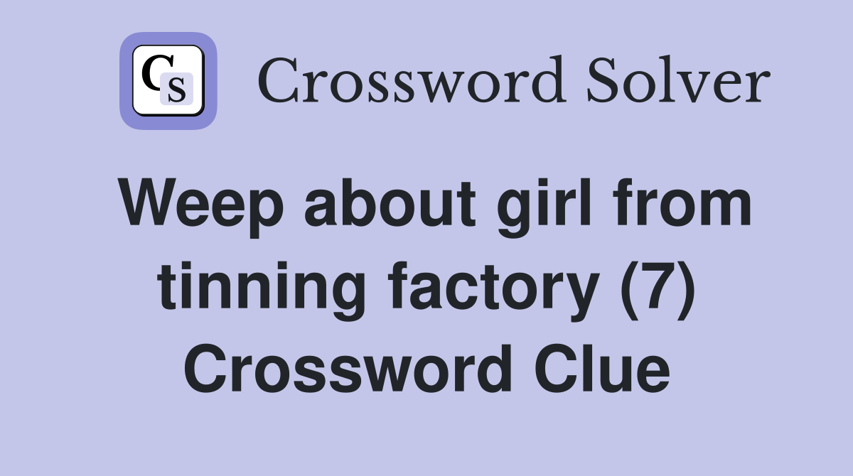 Weep about girl from tinning factory (7) Crossword Clue Answers