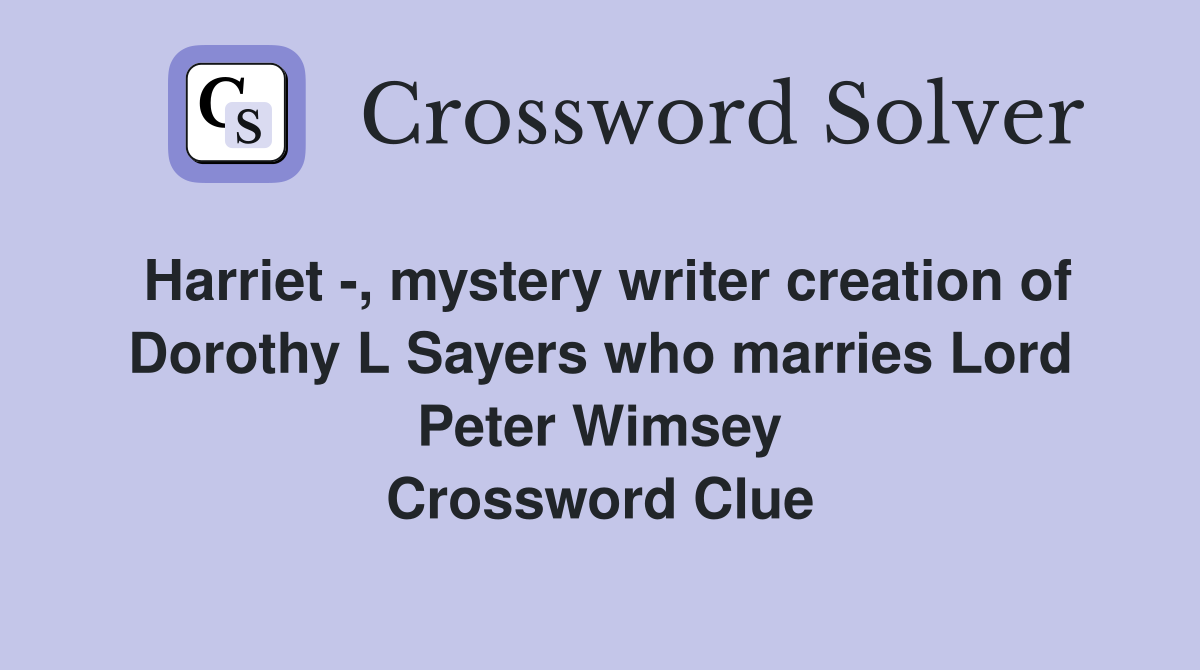 Harriet mystery writer creation of Dorothy L Sayers who marries Lord