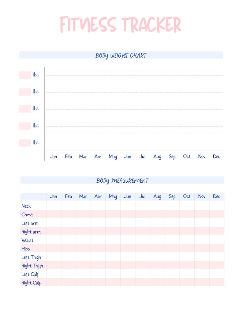 Printable Body Measurement Tracker Chart