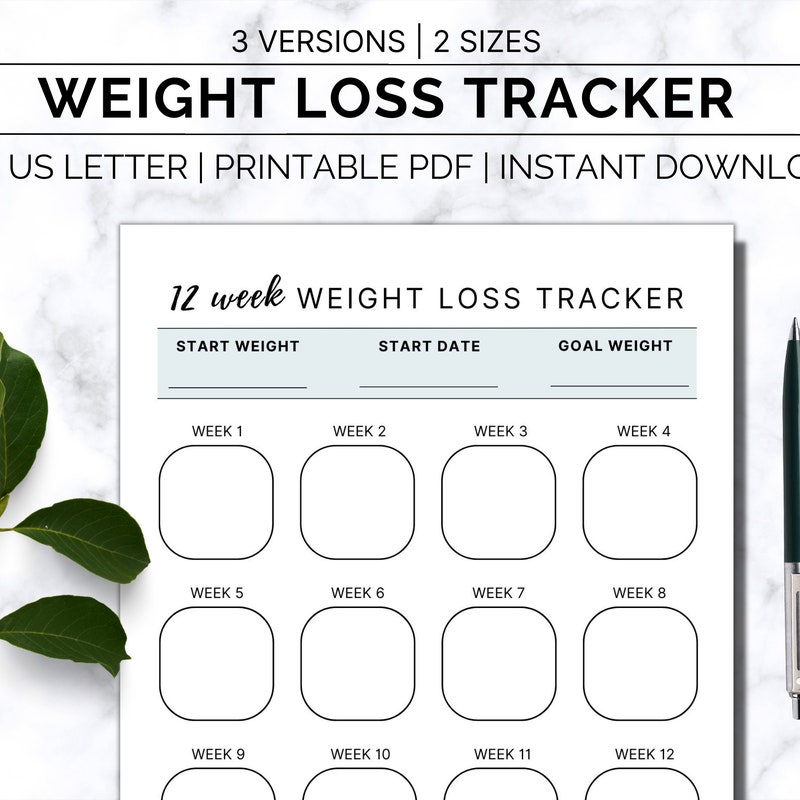 Weight Loss Tracker Printable: Weekly Monthly Goal Chart (digital