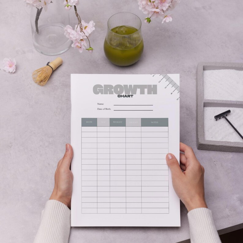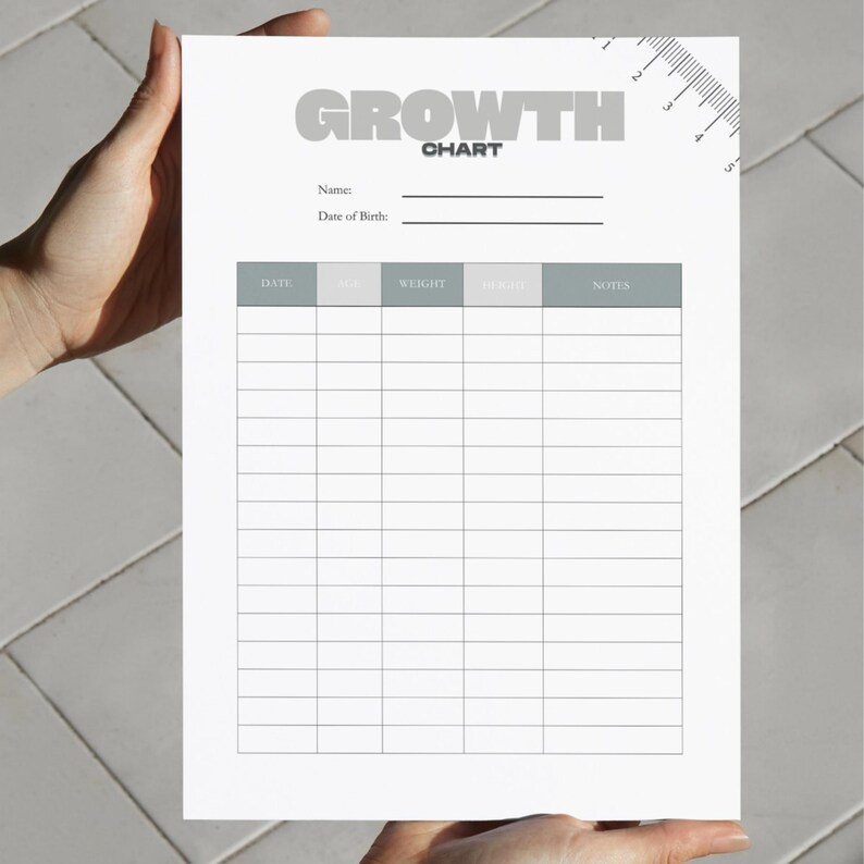 A4 Baby Growth Chart Printable: Kids Height Weight Tracker (digital