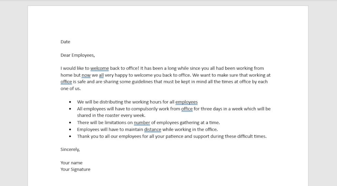 Editable Welcome Back Letter Welcome Back to Office Welcome Back to