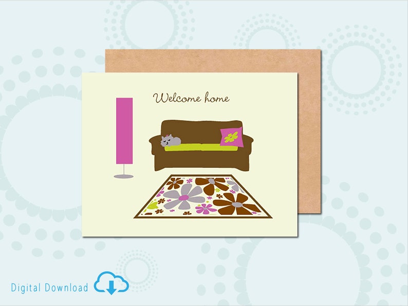 Printable Welcome Home Card Instant Digital New Home Cozy Couch New