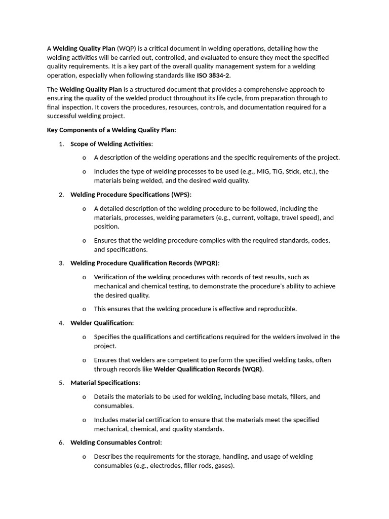 Welding Quality Control Plan (WQCP) Requirements in Accordance With