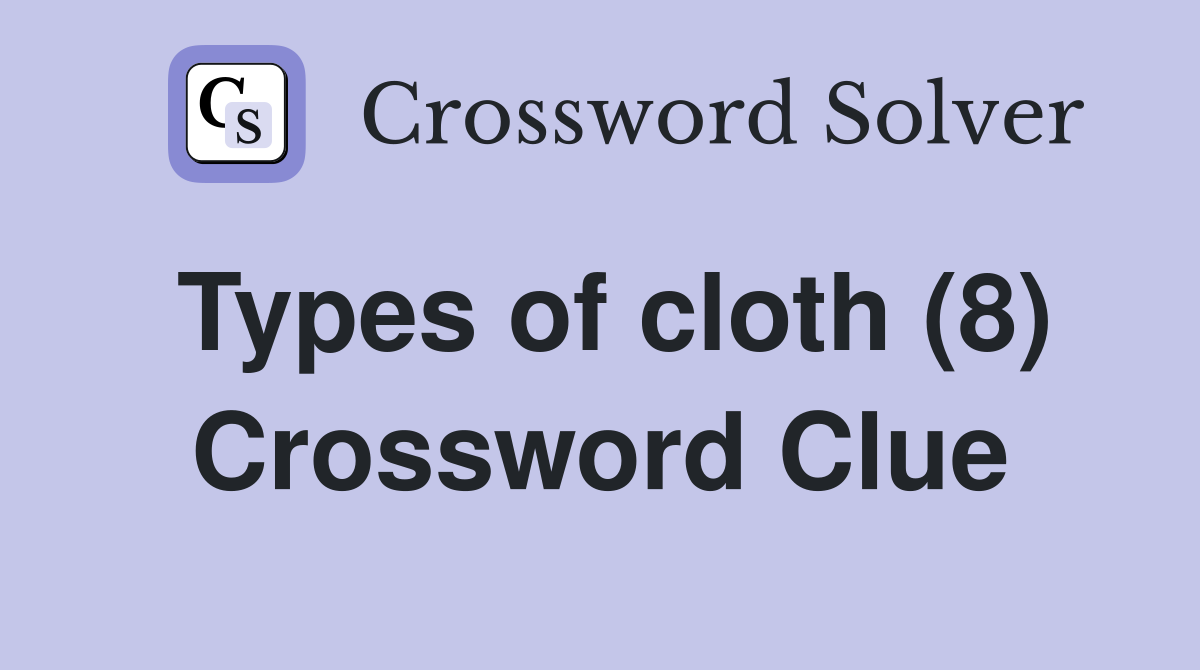 Types of cloth (8) Crossword Clue Answers Crossword Solver