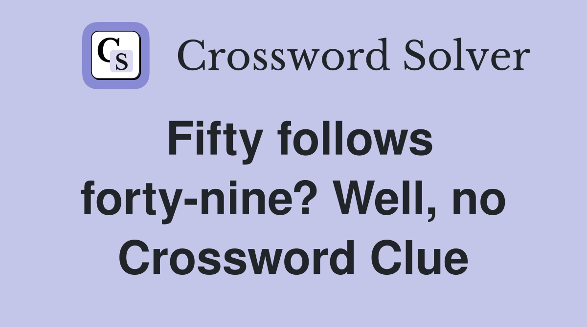 Fifty follows forty nine? Well no Crossword Clue Answers Crossword